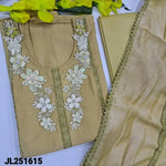 Onion pink designer premium silk cotton unstitched salwar material, rich floral applique work on yoke, pintex& fancy lace work on front(lining needed)matching santoon bottom, premium soft silk cotton dupatta with rich lace work. CODE JL251613