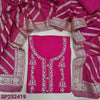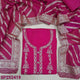 Dark Pink premium dola silk unctitched salwar material, zari and bead detailing on yoke (Thin, Silky, Lining Needed) Matching Santoon Bottom, Premium dola silk short width dupatta. SP252419