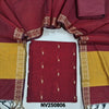 Rani Pink fancy silk cotton unstitched salwar material(lining needed) zari buttas allover, matching silk cotton bottom, dual shaded fancy silk cotton dupatta with zari woven borders & tassels. NV250804