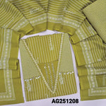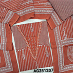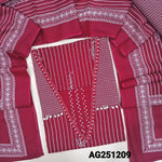 Bright pink premium cotton unstitched salwar material, v neck with thread, sequins &bead work(lining optional)printed pure cotton bottom, pure mul cotton full length dupatta. CODE AG251212