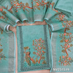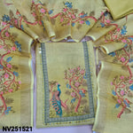 Pastel pink tissue silk cotton unstitched salwar material, digital printed yoke with zari and real mirror work (Thin, Lining Needed) Silky Bottom, Digital printed tissue silk cotton dupatta. NV251518