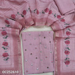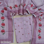 Powder Blue fancy silk cotton unstitched salwar material (soft, Lining Needed) embroidery work on front, matching santoon bottom, digital floral printed silk cotton dupatta. OC252609
