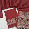 Premium Black jamdani woven silk cotton unstitched salwar material(lining needed) ajrak jamdani woven daman, matching silky bottom, thread woven buttas on silk cotton full length dupatta with jamdani woven pallu & tassels. JA262318