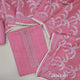 Premium bright Pink semi linen unstitched salwar material(texture, lining needed) real mirror, zari work on yoke, tree print on front, matching silky bottom, one side of tree print semi linen dupatta with lace tapings.JA261317
