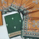 Premium dark Green tussar silk unstitched salwar material (lining needed) zari buttas allover, mehandhi yellow silk cotton bottom, digital printed tussar silk dupatta with tassels. DC252512