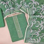 Premium powder Blue semi linen unstitched salwar material(texture, lining needed) real mirror, zari work on yoke, tree print on front, matching silky bottom, one side of tree print semi linen dupatta with lace tapings. JA261316