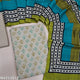 Printed rich Beige premium tussar silk unstitched salwar material (lining needed) matching silky botom, printed blue & green tussar silk full length dupatta. NV253012