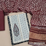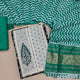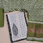 Printed Black cotton unstitched salwar material (lining optional) patch work on yoke, turquoise green cotton bottom, batik design on fancy silk cotton dupatta. DC252321