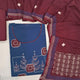 Block printed Blue cotton unstitched salwar material(lining optional) embroidery work on yoke, maroon cotton bottom, printed jakard cotton dupatta. DC250314