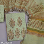 Pastel Blue block printed chikankari embroidered mul cotton unstitched salwar material, panel pattern on front(lining needed)block printed cotton bottom, block printed kota cotton dupatta with gold tissue border. DC250307