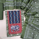 Floral printed dark Maroon cotton unstitched salwar material(lining optional) applique, ajrak print on yoke, matching spun cotton bottom, printed soft cotton dupatta. DC250404