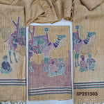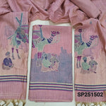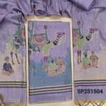 Lavender Jamdani woven silk cotton unstitched salwar material (Thin, Lining Needed)thread and zari weaving on daman, matching santoon bottom, jamdani woven full length silk cotton dupatta. SP251501