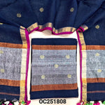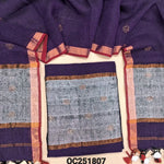 Designer Purple jamdani woven pure linen unstitched salwar material(thin, lining needed), silver jamdani woven in daman, NO BOTTOM, jamdani woven pure linen dupatta with tissue borders& tassels. OC251807