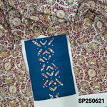Dark purple satin cotton unstitched salwar material, faux mirror& applique work on daman(lining optional)kalamkari printed pure cotton bottom, kalamkari printed pure mul cotton dupatta. CODE SP250620