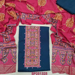 Reddish Maroon modal unstitched salwar material, colorful yoke patch with bead and faux mirror (Soft, smooth, lining optional), Matching bottom, Maslin silk short width printed dupatta. SP251326
