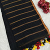 CODE NS147 : Reddish maroon premium linen saree with gold tissue borders(thin& light weight)heavy gold tissue lines for pallu with tassels, plain running blouse with gold tissue borders.