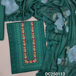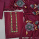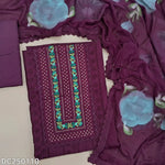 Reddish Maroon schiffli embroidered cotton unstitched salwar material, embroidery& sequins work on yoke(lining needed) matching cotton bottom, brush painted fancy chiffon dupatta with lace tapings. DC250112