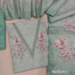 Rich beige with golden tint tissue silk cotton unstitched salwar material,real mirror and embroidery work on yoke (thin, Lining Needed) abstract prints all over, matching silky bottm, floral printed tissue silk cotton dupatta. NV252416