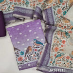 Sage Green kota silk cotton unstitched salwar material(thin, lining needed) zari buttas allover, digital bird print daman, matching spun cotton bottom, digital printed kota silk cotton dupatta. JA261314