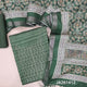 Sage Green semi gicha unstitched salwar material (textured, lining needed) thread & sequins work on yoke, matching silky bottom, digital printed silk cotton full length dupatta with tassels. JA261412