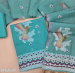 Sea Green jamdani woven silk cotton unstitched salwar material (lining needed) bird jamdani woven on front, matching silk cotton bottom, jamdani woven silk cotton full length dupatta. JA260514
