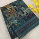 CODE NS20 : Light teal blue shade digital printed silk cotton saree(thin& light weight)striped pattern pallu, zigzag printed blouse with borders.