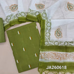 Teal Blue handloom cotton unstitched salwar material (lining needed) thread woven buttas on front, matching cotton lining provided, NO BOTTOM, block printed kota silk cotton dupatta. (TAPING NEEDED)JA260619