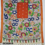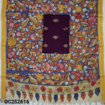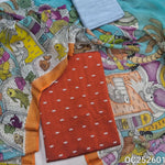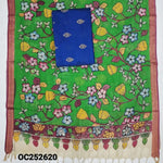 Teal blue premium raw silk unstitched salwar material (textured, Lining Needed) thread woven buttas allover, silver grey silk cotton bottom, original pen kalamkari silk dupatta with zari borders. OC252618