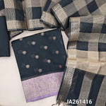 Turquoise Blue soft silk cotton unstitched salwar material (lining needed) zari buttas allover, double side contrast border, matching silk cotton bottom, tissue checked silk cotton dupatta with tassels JA261415