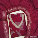 Bright Turquoise Blue Bandhini printed maslin silk unstitched salwar material, neckline with zari and sequins work (Soft, Lining Needed) Matching Spun Cotton Bottom, Jakard silk cotton dupatta with self design and sequins work and tapings. NV252308