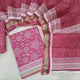 Warli printed pink soft cotton unstitched salwar material (lining needed) thread woven borders on daman, warli printed cotton bottom, warli printed soft mul cotton dupatta. JA260306