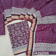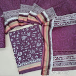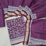 Warli printed purple soft cotton unstitched salwar material (lining needed) zari borders on daman, printed cotton bottom, warli printed soft cotton full length dupatta. JA260506