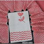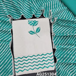 White chikankari embroidered pure cotton unstitched salwar material, applique work on yoke(lining needed)pink drum dyed thin cotton bottom, lehariya printed pure cotton dupatta with lace tapings. CODE AG251302