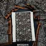 Half white schiffli embroidered pure cotton unstitched salwar material, kantha cotton yoke(lining needed)dasrk blue printed kantha cotton bottom, printed pure cotton dupatta. CODE MY252416