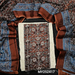Half white schiffli embroidered pure cotton unstitched salwar material, kantha cotton yoke(lining needed)dark brown printed kantha cotton bottom, printed pure cotton dupatta. CODE MY252419