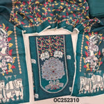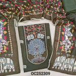 Deep wine Purple Tissue silk cotton unstitched salwar material (silky, Lining Needed) elephant print allover, bead work on yoke, matching santoon bottom, digital printed tissue silk cotton dupatta with tapings. OC252311