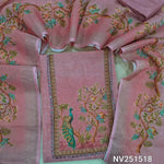 Pastel yellow tissue silk cotton unstitched salwar material, digital printed yoke with zari and real mirror work (Thin, Lining Needed) Silky Bottom, Digital printed tissue silk cotton dupatta. NV251521